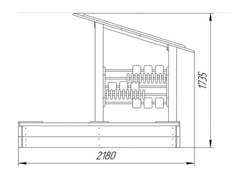 Песочница прямоугольной формы имеет сборную конструкцию. Песочница включает в себя шесть столбов, четыре борта, четыре скамьи, каркас навеса, навес, комплект счет, комплект кубиков для игры в «крестики-нолики» и декоративные накладки. Сборка каркаса песочницы осуществляется путем крепления бортов песочницы к столбам. Песочница устанавливается углублением столбов в грунт. Возраст пользователя от 3 до 6 лет.   Опорные столбы выполнены из клееного бруса сечением не менее 100мм*100мм с канавкой посередине. Борта и скамьи выполнены из хвойной доски влажностью 7-10% сечением не менее 140м*40мм. Каркас навеса выполнен из профильной трубы сечением не менее 40мм*20мм и листового металла толщиной не менее 4мм. Навес выполнен из влагостойкой фанеры толщиной не менее 24мм. Декоративные накладки выполнены из влагостойкой фанеры толщиной не менее 15мм. Комплект счет выполнен из влагостойкой фанеры толщиной не менее 24мм и круглой трубы сечением не менее 21мм. Комплект кубиков выполнен из влагостойкой фанеры толщиной не менее 24мм, круглой трубы сечением не менее 21мм и клееного бруса сечением не менее 100мм*100мм. Все металлические элементы выполнены с применением высокоточного оборудования. Деревянные и фанерные элементы изготавливаются на полуавтоматизированной линии по обработке изделий.   Все деревянные элементы изготавливаются из хвойной доски влажностью 7-10%, подвергаемой склейке по длине и ширине заготовки с применением клеев зарубежных производителей; изгибы, радиусы и скругленные кромки тщательно отшлифованы и обработаны краской для закрытия торцов JRM (ГОСТ Р 52169-2003 п.4.3.11). Все деревянные элементы проходят окраску в три слоя: первый слой – грунтование заготовки с последующим шлифованием поверхности, второй слой – покраска вододисперсионной краской с последующим шлифованием поверхности, третий слой – финишная покраска. Все деревянные элементы окрашиваются краской финского производителя TEKNOS, соответствующей требованиям санитарных норм и экологической безопасности. Все металлические элементы изготавливаются из круглых и профильных труб с применением горячекатаного листа. Весь применяемый металлопрокат соответствует ГОСТ 8639-82, ГОСТ 1577-93, ГОСТ 10705-80. Все металлические элементы окрашиваются порошковой краской финского производителя TEKNOS, соответствующей требованиям санитарных норм и экологической безопасности. Для более качественного прокраса все металлические элементы проходят двойной цикл покраски. Все фанерные элементы изготовлены из многослойной влагостойкой, склеенной под прессом и соответствующей ГОСТ 30427-96 фанеры; изгибы, радиусы и скругленные кромки тщательно отшлифованы и обработаны краской для закрытия торцов JRM (ГОСТ Р 52169-2012 п.4.3.11). Окраска фанерных элементов происходит в три слоя: первый слой – грунтование заготовки с последующим шлифованием поверхности, второй слой – покраска двухкомпонентной краской с последующим шлифованием поверхности, третий слой – финишная покраска. Все фанерные элементы окрашиваются краской финского производителя TEKNOS, соответствующей требованиям санитарных норм и экологической безопасности.   Крепеж оцинкован. Выступающие части резьбовых соединений закрыты пластиковыми заглушками (ГОСТ Р 52169-2012 п. 4.3.9). Крепление элементов оборудования исключает возможность их демонтажа без примене